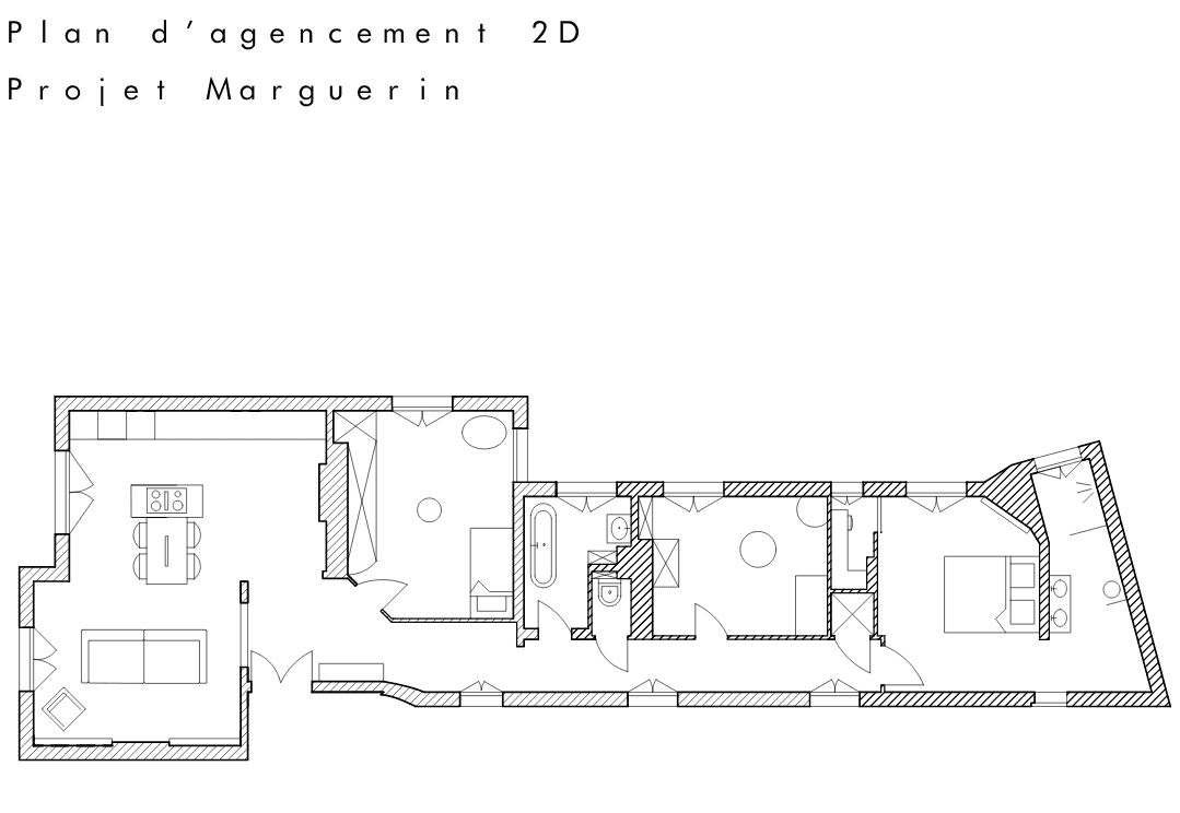 Nous travaillerons sur l'aménagement des espaces, la recomposition des volumes afin d'optimiser votre logement pour le rendre fonctionnel et esthetique.